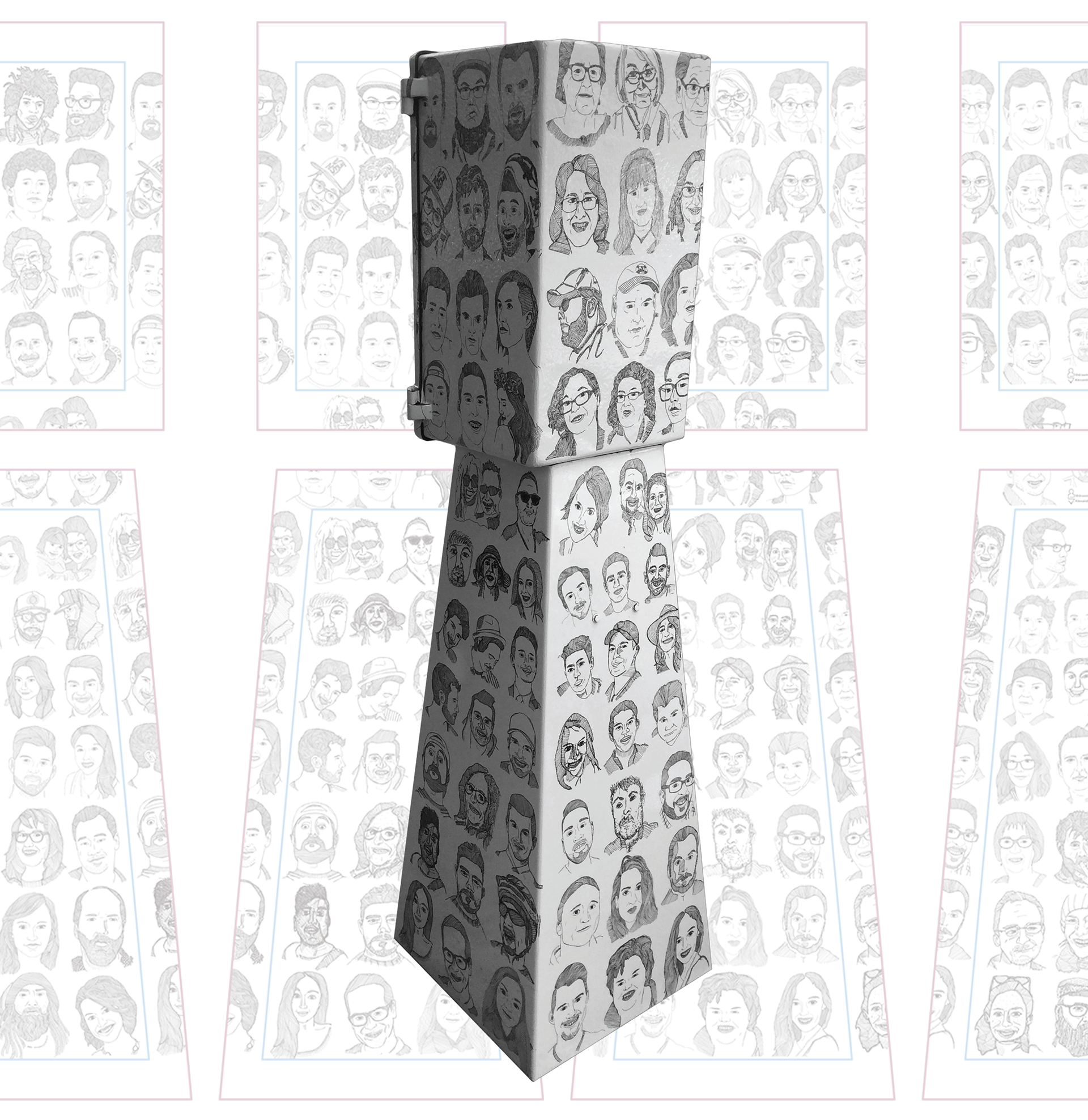 This project with The City of Vancouver deeply shaped Drawing Thanks in its early days. In order to achieve a mural of 142 faces of Vancouver, each week leading up to install was given a theme: Local Business Leaders, Local Artists, Local Photographers, Local Upcyclers, Local Designers, Local Athletes, Local Artists, Local Musicians, etc. It was a wonderful way to build a personal sense of community—especially when folks were asked who should be drawn next! Webs were spun, dots were connected, and a greater sense of community began to inform Drawing Thanks.