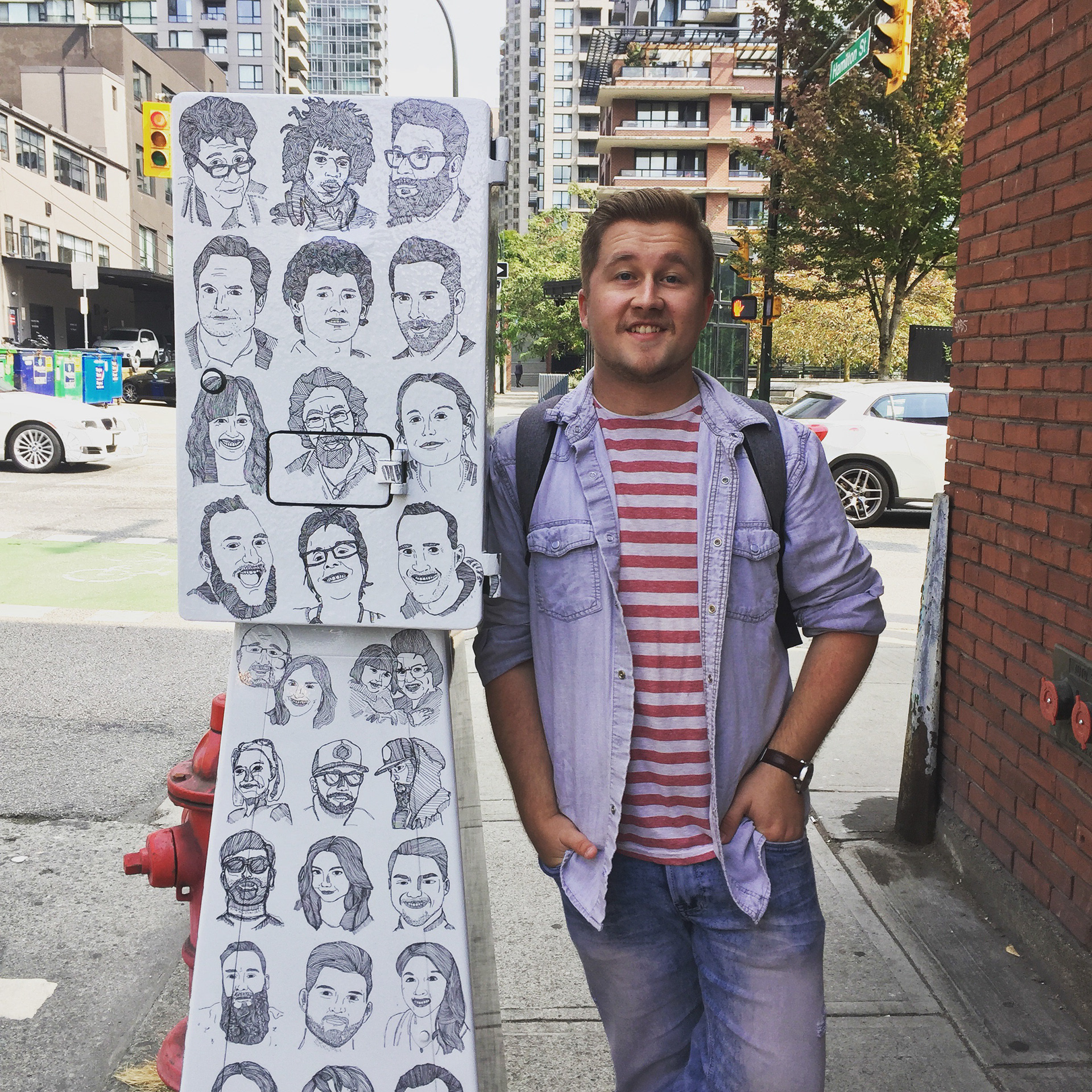Alex posing with the Yaletown Vinyl Wrap Mural.